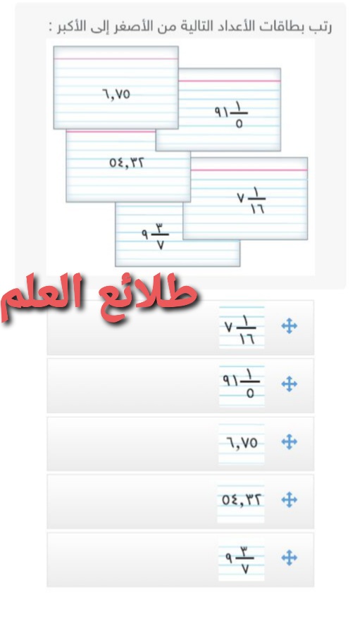 رتب بطاقات الأعداد التالية من الأصغر إلى الأكبر؟